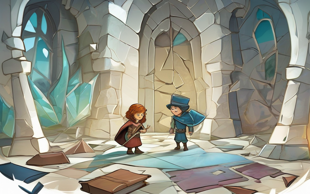 Each fragment pulsed with light, not reflecting the dusty room anymore. Instead, a swirling, miniature world glowed within each shard’s surface. Alex stared, wide-eyed. Before Alex could even think, the first fragment seemed to pull them forward, a gentle but firm tug, and in a blink, Alex tumbled into a realm of pure wonder.